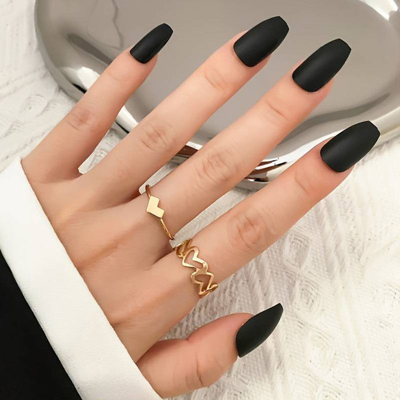 Meet the Golden Pulse Hearts, your new go-to ring duo for everyday glam. This sleek and minimalistic set features two lightweight rings – one with a polished heart pattern and another with a zigzag heartbeat design – both finished in rich gold tones.