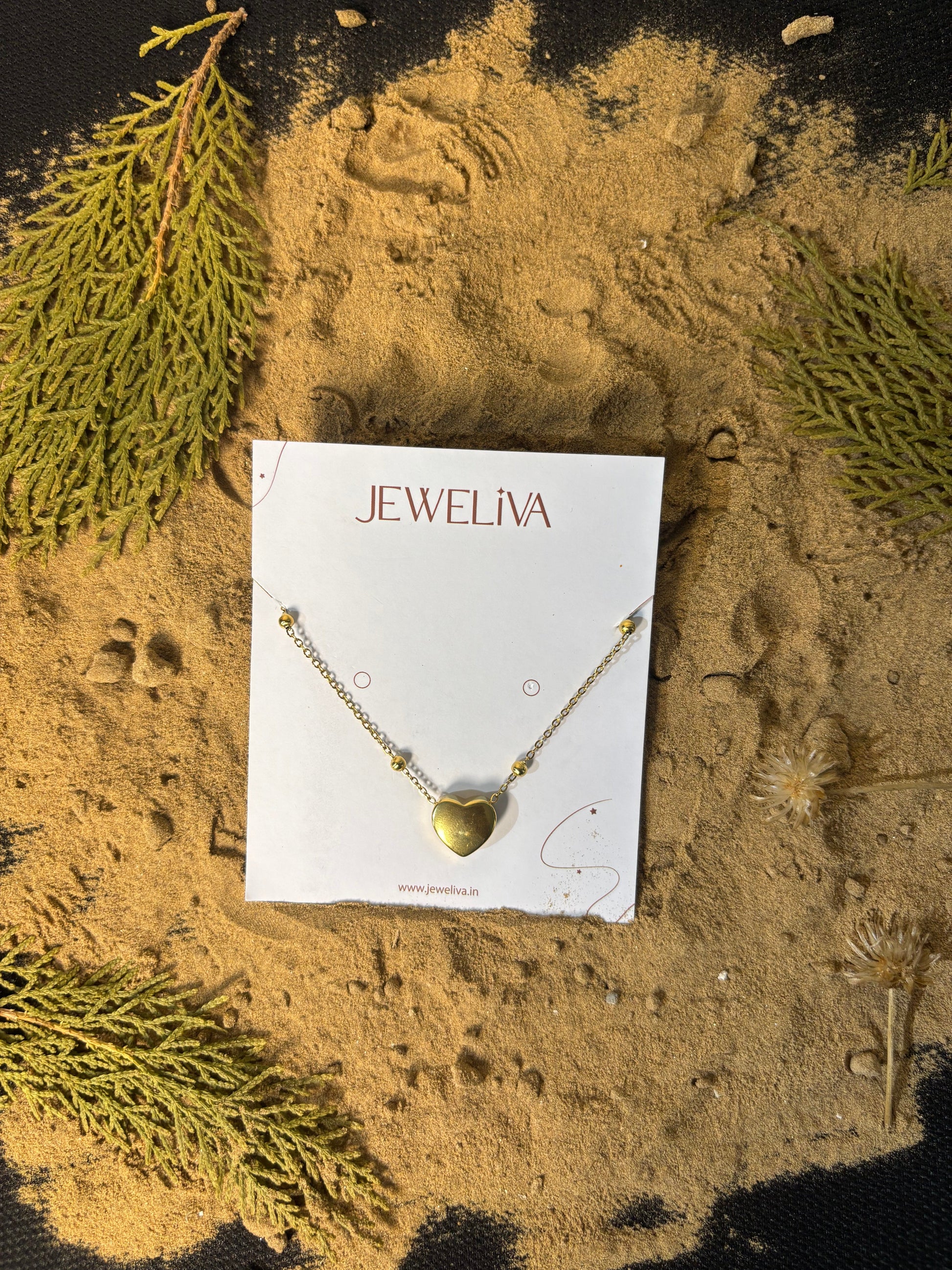 Effortlessly elegant and timelessly romantic, the Golden Charm Heart Bead Necklace is a modern twist on a classic favorite. Featuring a polished heart pendant surrounded by delicate gold beads along a fine chain, this piece adds a graceful sparkle to any outfit.